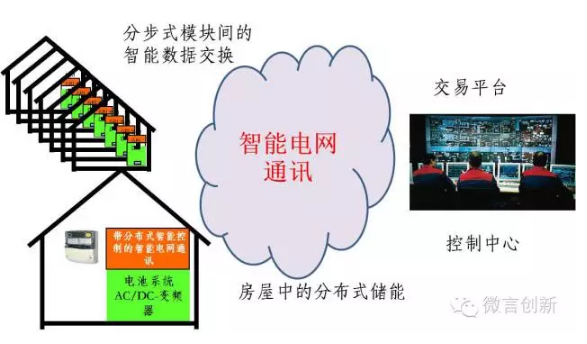分布式微電網(wǎng)上的能量和產(chǎn)生的數(shù)據(jù),通過智能電網(wǎng)和因特網(wǎng)實(shí)現(xiàn)互聯(lián)互通,將相關(guān)信息發(fā)布到交易平臺上。微電網(wǎng)本身也由很多小模塊組成,集結(jié)在一起能夠做到在當(dāng)?shù)叵牡羲a(chǎn)生的能量。