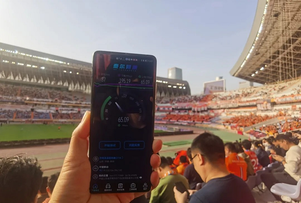 圖:濟南奧體中心5G網(wǎng)速測試