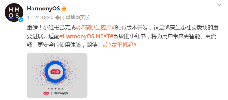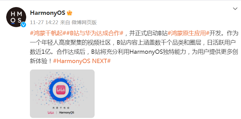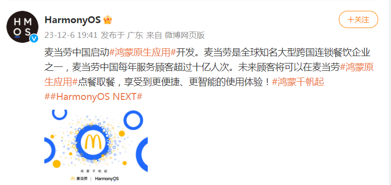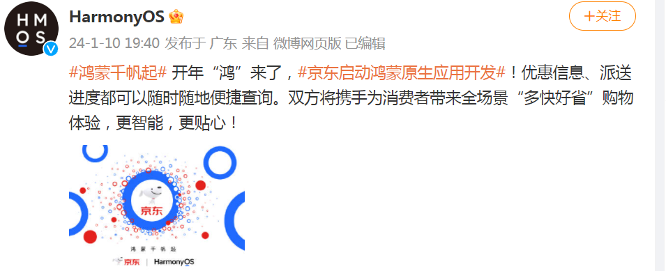 1月10日晚,HarmonyOS微博發(fā)文稱:京東啟動(dòng)鴻蒙原生應(yīng)用開(kāi)發(fā),雙方將攜手為消費(fèi)者帶來(lái)全場(chǎng)景“多快好省”購(gòu)物體驗(yàn),更智能,更貼心。