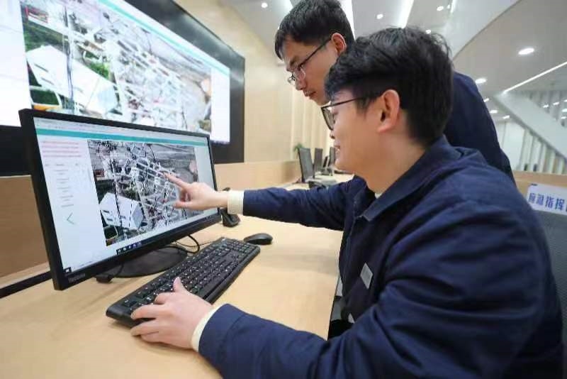 國網(wǎng)天津城南供電公司供電服務(wù)指揮人員利用“全景保供電場景”監(jiān)測設(shè)備運行狀態(tài)。