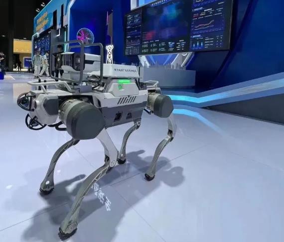 ▲數(shù)字化技術(shù)成為保障電網(wǎng)安全的重要支撐力量。圖為南方電網(wǎng)公司在網(wǎng)絡(luò)安全博覽會(huì)上展示的新型四足巡維智慧狗“吠云” 。林丹丹 攝