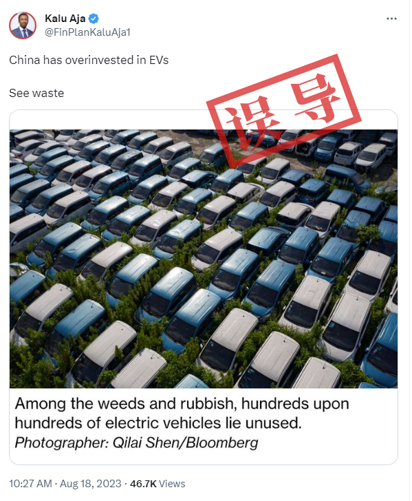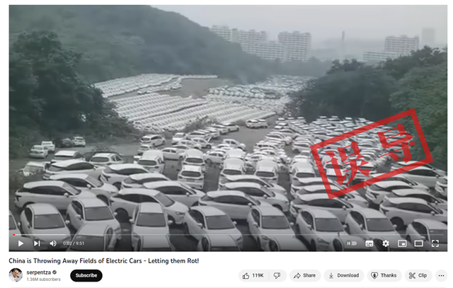近段時間,推特、Youtube等社交平臺上廣泛流傳說法稱,“中國對電動汽車投資過度”“中國正在丟棄大量汽車,任其腐爛”、“浪費”。有關(guān)說法通常配有圖片或視頻,顯示在雜草叢中停放著上百輛汽車。