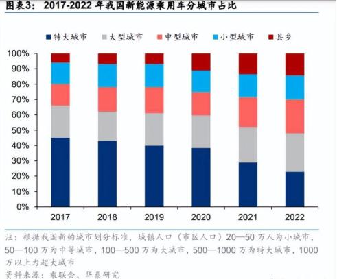 前述華泰報告顯示,當前我國縣鄉(xiāng)地區(qū)占整體新能源車市場的比重較低,與全國平均水平有巨大差距,與特大城市及大型城市更是有巨大鴻溝。