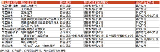 圖:蜂巢能源核心技術(shù)。來源:蜂巢能源招股說明書,光大證券