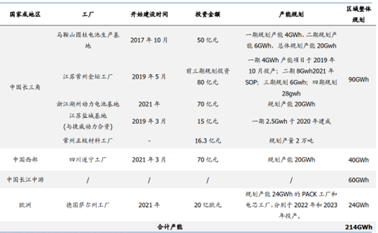 圖:蜂巢能源工廠規(guī)劃。資料來源:高工鋰電,國(guó)盛證券研究所