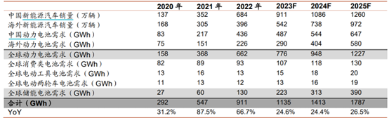圖:全球鋰電池(含儲(chǔ)能)需求估計(jì)。資料來源:GGII、EVTank、招商證券