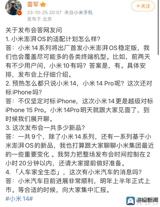 雷軍在社交平臺(tái)答網(wǎng)友問(wèn)