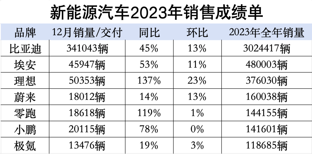 不少新能源車企都取得了不俗的成績,其中,比亞迪銷量穩(wěn)坐頭把交椅,不僅超額完成2023年銷量目標(biāo),還同時突破300萬輛年銷量紀(jì)錄。