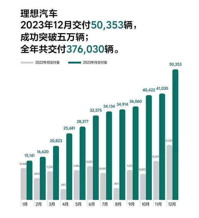 理想汽車2023年交付數(shù)據(jù) 數(shù)據(jù)來源:官網(wǎng)