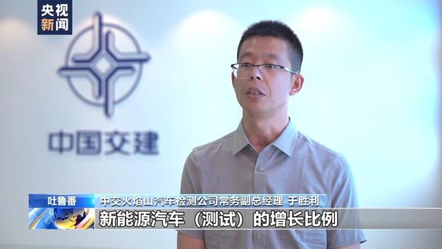 中交火焰山汽車檢測公司常務(wù)副總經(jīng)理 于勝利:吐魯番6到9月份,氣溫就可以達到40℃以上。我們同比進行分析,新能源汽車測試的增長比例已經(jīng)達到了25%左右,測試的四輛車里大概有一輛車就是新能源車。