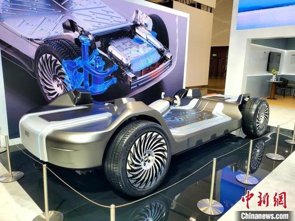 9月27日,為期三天的2024世界新能源汽車大會(huì)在海口開幕。圖為車企在全球新能源汽車產(chǎn)品及技術(shù)展上展示的新能源汽車底盤。中新社記者 王曉斌 攝