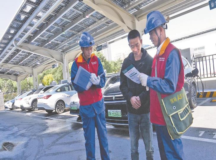 大同供電公司員工為新能源汽車車主講解充電流程。 陳少華 攝