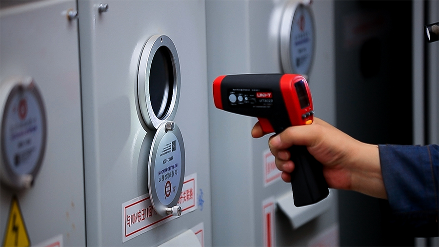 在昆明東風(fēng)廣場(chǎng),工作人員正對(duì)變壓器內(nèi)的設(shè)備進(jìn)行檢修(6月7日攝)。新華網(wǎng) 徐華陵 攝