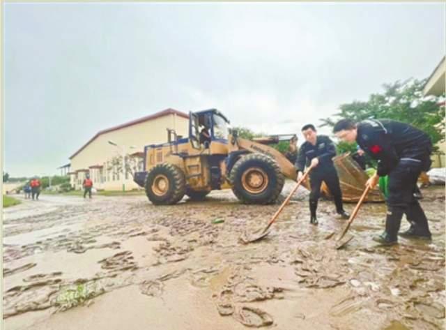 由于站房內(nèi)外淤泥較深,先批到達的特戰(zhàn)隊員立即開始清淤工作。清理完畢后,大家將受損的設(shè)備拆除沖洗,頂著正午的烈日將設(shè)備擦拭和烘干。工作服的顏色逐漸深了下去,每張沁滿汗水的臉頰上都寫著“爭分奪秒”四個字。