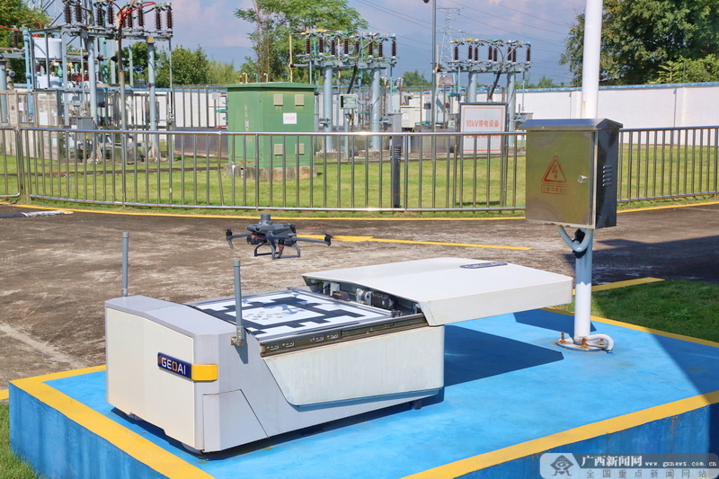 玉林供電局變電站值班員遠程下令,指揮無人機對變電站保供電設備進行自主巡視。佘晟 攝
