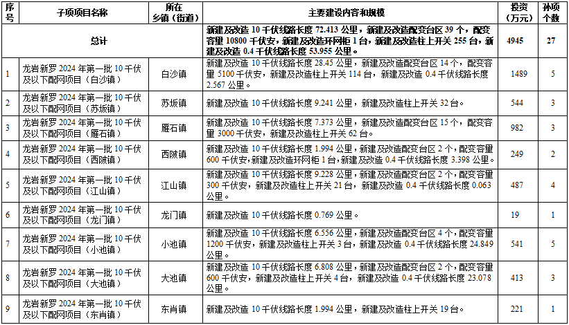 3月29日,福建龍巖新羅2024年第一批10千伏及以下配網(wǎng)工程項(xiàng)目獲核準(zhǔn)。