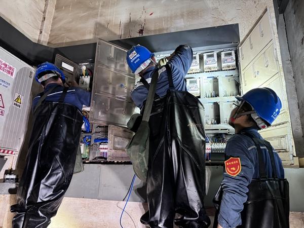 6月22日,南方電網(wǎng)廣西欽州供電局與桂林、北海供電局的黨員突擊隊員并肩作戰(zhàn),為桂林市萬達翰林府小區(qū)群眾接入應(yīng)急電源。王代高攝