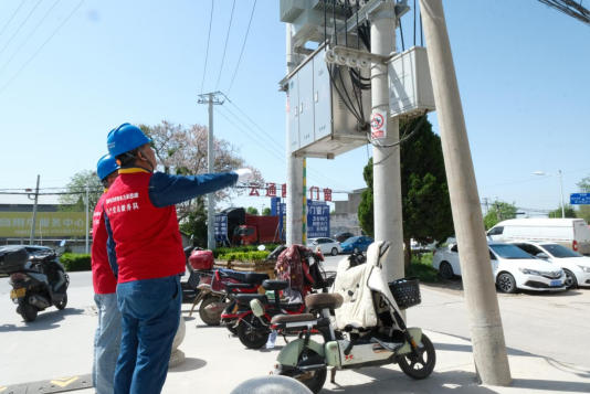 圖為工作人員深入院區(qū)各處供電點(diǎn)位開(kāi)展專項(xiàng)用電安全巡檢,全面摸排院區(qū)整體供電環(huán)境。