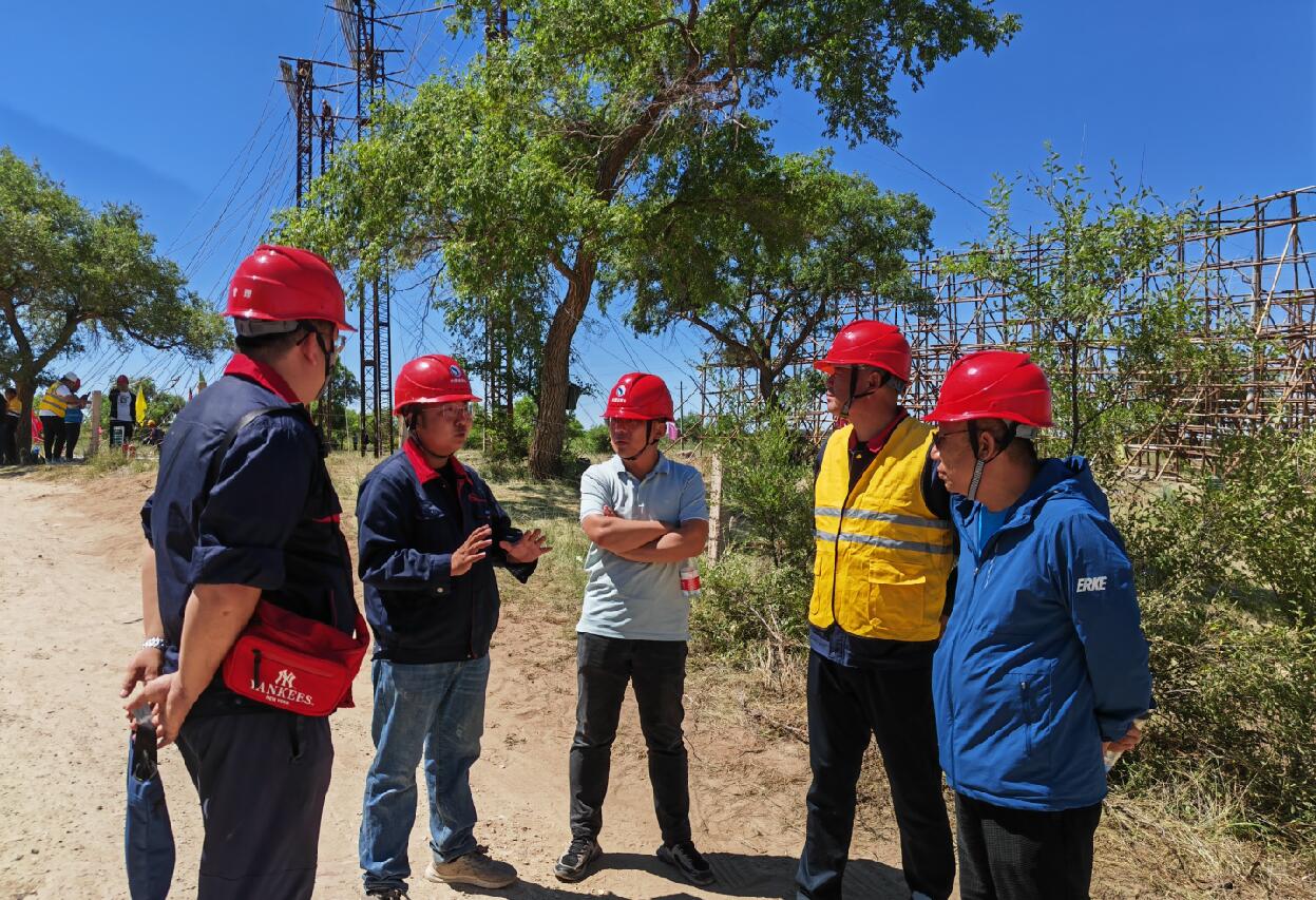 7月21日10時40分,項目部組織施工人員立即展開鐵路封網(wǎng)等工作,于當(dāng)日12時10分封網(wǎng)工作順利完成并交令。7月22日-24日,經(jīng)過四天緊張施工,順利跨越完成桑錫鐵路,同時鉆越完成500千伏白騰 I、II線。7月25日-26日,順利完成附件安裝、跳線安裝、間隔棒安裝等,認(rèn)真消缺并通過業(yè)主驗收。7月27日7時,施工人員緊張有序地拆除桑錫鐵路上方的絕緣桿及鐵路兩側(cè)跨越架、防護(hù)架、拉線地錨等,于當(dāng)日8時30分安全交令,在鐵路部門批準(zhǔn)的窗口期內(nèi),實現(xiàn)了輸電線路對鐵路的跨越。
