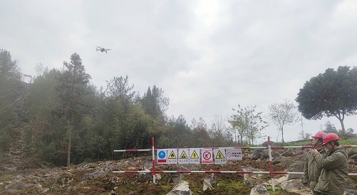 中國電力網(wǎng)訊 12月8日,在湖北省建始縣花坪鎮(zhèn)三岔槽村,湖北送變電工程有限公司恩施東-朝陽500千伏線路工程(恩施段)項目工人們翻山越嶺奔赴(T53號)基礎(chǔ)施工場,他們?nèi)讨坦呛L(fēng),運用無人機對電網(wǎng)施工點位開展安全巡查,助力工程建設(shè)平穩(wěn)推進。(郭秀春、郭暉)
