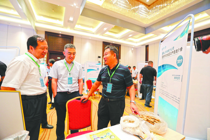 劉衛(wèi)東(中)參加定點扶貧地區(qū)農(nóng)產(chǎn)品推介會。