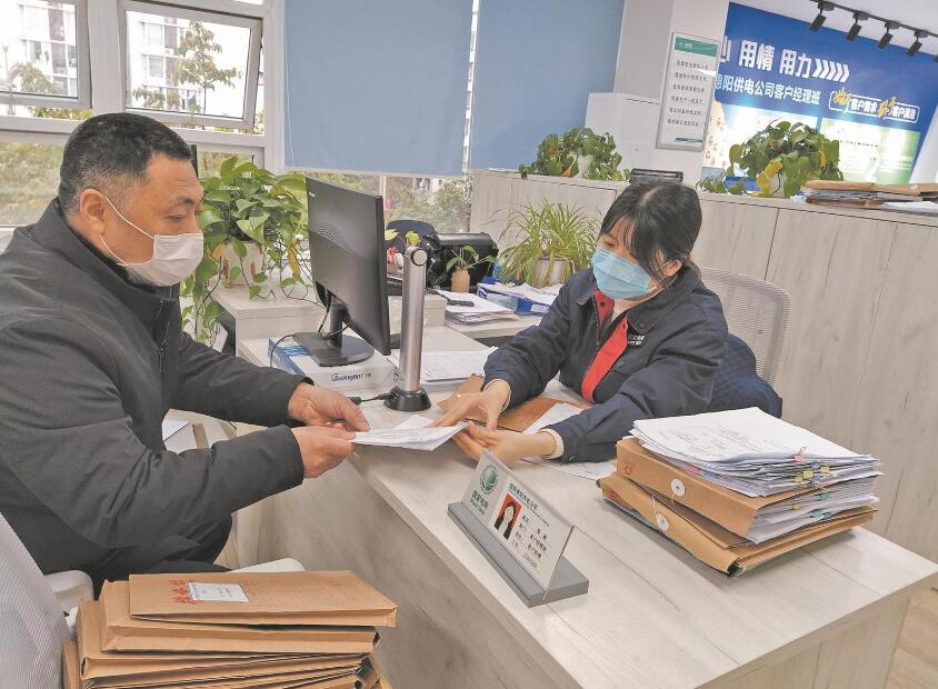 鄭燕(右)幫客戶檢查辦理并網(wǎng)業(yè)務所需的材料。