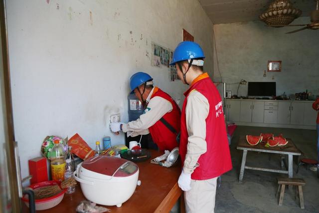國網(wǎng)江蘇電力(淮陰光明在線)共產(chǎn)黨員服務隊檢查更換困難家庭家中開關(guān)、插座,確保其在夏季高溫期間安全可靠用電。