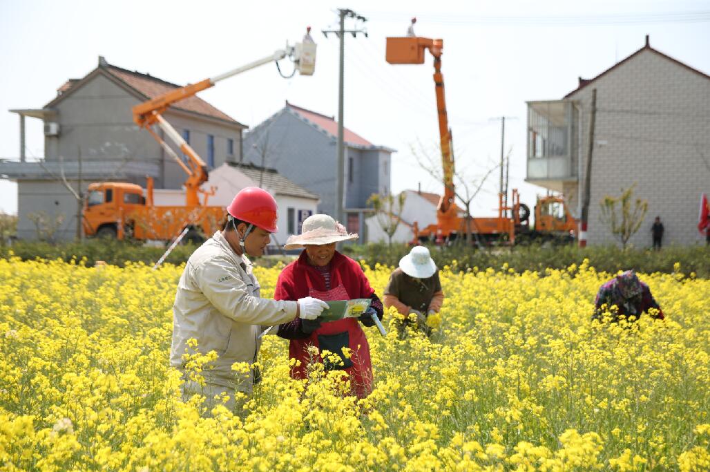 4月9日,在豐樂村開展不停電作業(yè)的長興供電公司,為當?shù)剞r民進行用電安全的科普工作