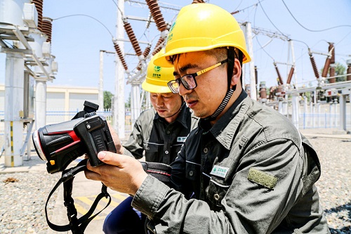 炎炎夏日,天氣悶熱。國網(wǎng)天津城南供電公司和平供電服務(wù)中心用電檢查員來到和平區(qū)長安東里社區(qū),對小區(qū)配電設(shè)備開展帶電檢測和紅外測溫特巡,確保設(shè)備安全運(yùn)行,滿足客戶清涼度夏的用電需求。