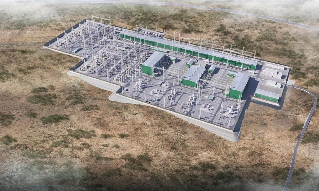▲寧夏—湖南±800千伏特高壓直流輸電工程中寧換流站效果圖