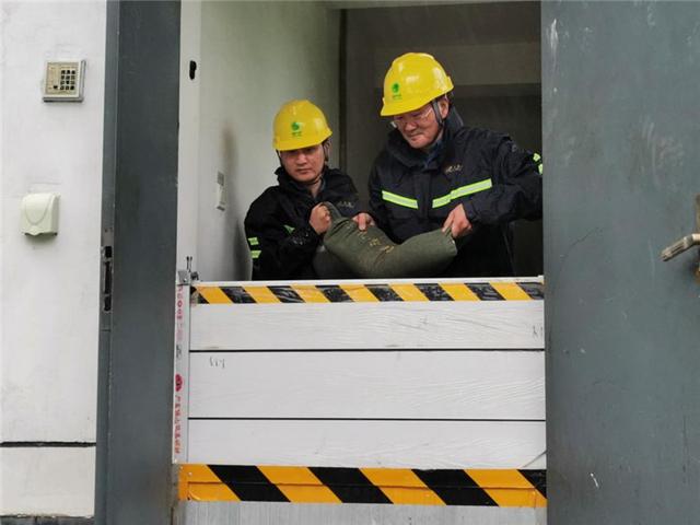國網(wǎng)安徽安慶岳西縣供電公司員工裝沙袋加固城西變電站圍墻,防范臺(tái)風(fēng)影響變電站設(shè)備安全運(yùn)行。