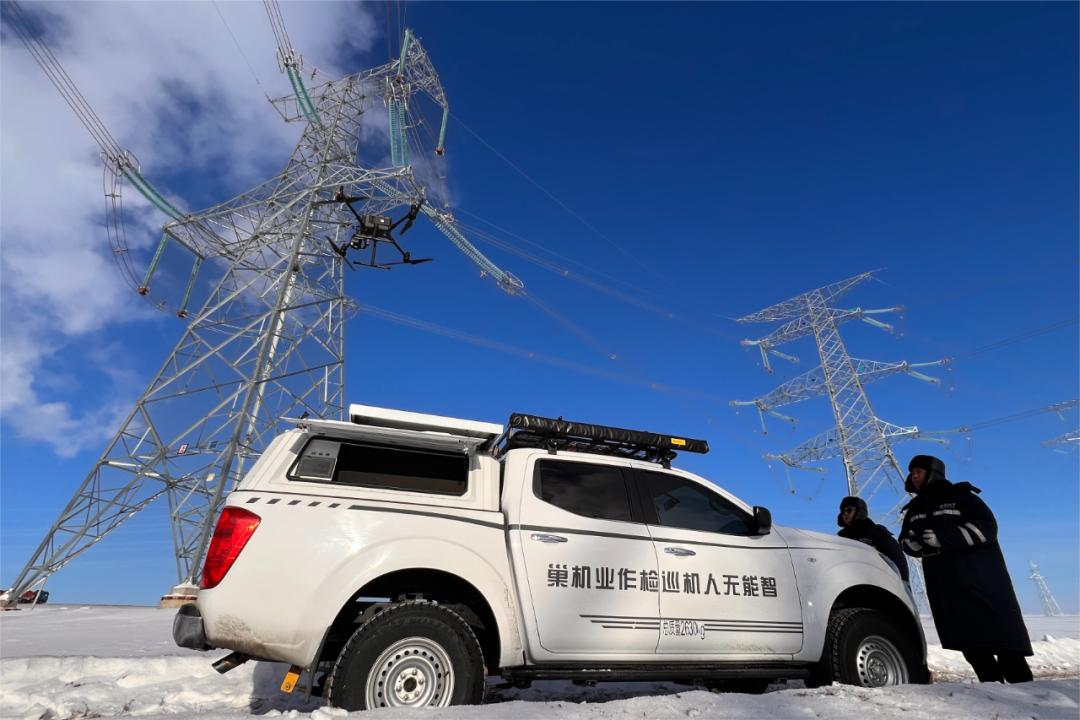 作為祖國北疆極寒地區(qū),供電保障需要克服惡劣天氣的影響,同時(shí)精準(zhǔn)、高效地完成任務(wù)。國網(wǎng)蒙東呼倫貝爾供電公司自主研發(fā)的“無人機(jī)航母”為這場冰雪盛會再添新動(dòng)能。運(yùn)維人員只需一鍵啟動(dòng),伴隨著旋翼快速轉(zhuǎn)動(dòng),無人機(jī)騰空而起,按照預(yù)定規(guī)劃好的航線開始巡檢任務(wù),在操控器的顯示屏上,巡檢數(shù)據(jù)實(shí)時(shí)傳輸,線路運(yùn)行情況一目了然。