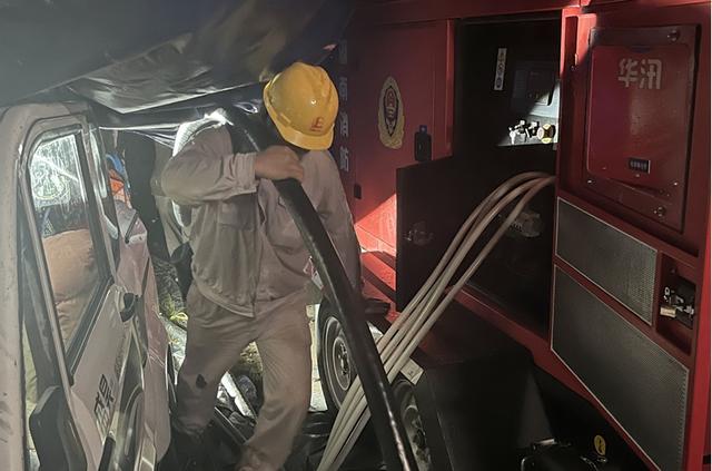 國網(wǎng)湖南岳陽供電公司員工在團西排水點開展抽排水臨時電源施工。