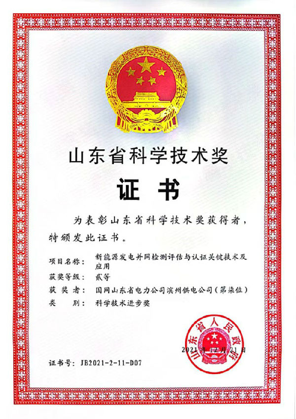 本網訊 7月1日,筆者從《山東省人民政府關于2021年度山東省科學技術獎勵的決定》上了解到,濱州公司參與申報的《新能源發(fā)電并網檢測評估與認證關鍵技術研究及應用》項目榮獲2021年度山東省科學技術獎科技進步二等獎。這是濱州公司首次獲得山東省科學技術獎。