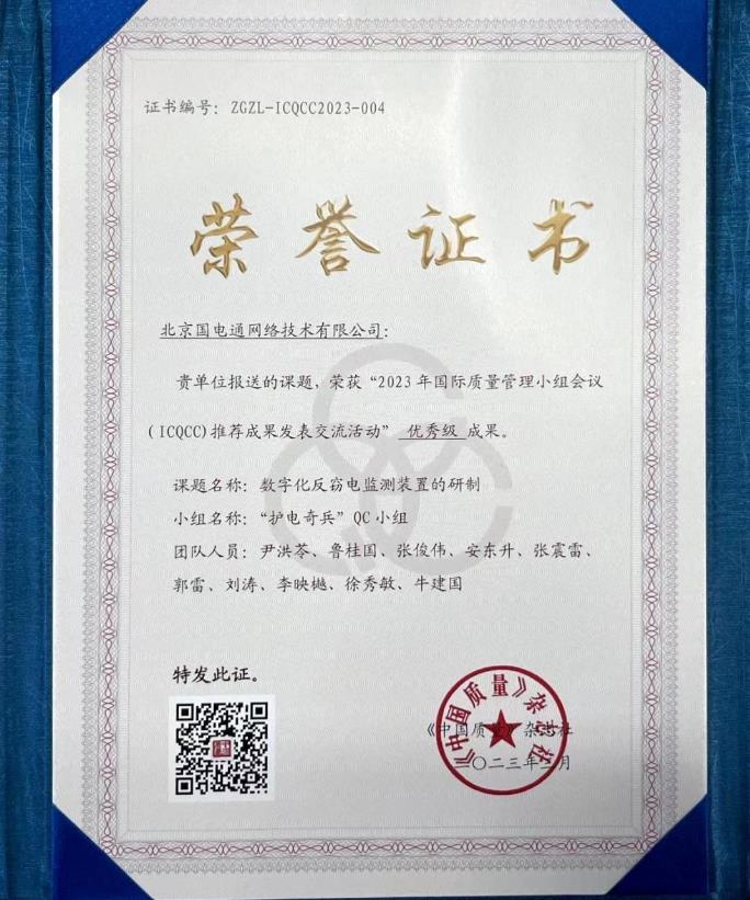 國(guó)網(wǎng)信產(chǎn)國(guó)電通“護(hù)電奇兵”QC小組成果獲國(guó)際質(zhì)量管理小組優(yōu)秀獎(jiǎng)