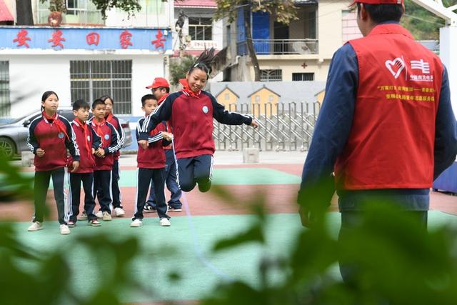 洛麥小學(xué)的學(xué)生,用捐贈的體育用品在跳繩。龍定錦攝