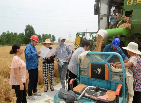 國網(wǎng)泗水縣供電公司組織服務(wù)人員走進田間地頭,巡視供電線路設(shè)備,向正在麥收的村民宣傳安全用電知識,對收割機駕駛員和運輸秸稈的貨車司機開展線路防外力破壞宣傳,為麥收供用電安全保駕護航。