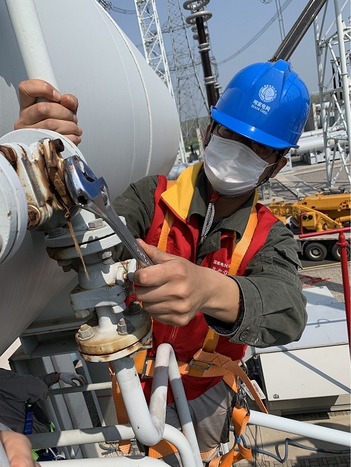 在對特高壓淮南站主變高壓端子接線柱及端部法蘭進(jìn)行排查時,發(fā)現(xiàn)接線柱有偏移且端部法蘭不平整,作為變電站的“心臟”,必須確保主變的健康水平,4月3日至5月8日,國網(wǎng)安徽檢修公司圓滿完成特高壓淮南站內(nèi)兩臺主變的“心臟手術(shù)”,此次開展1000千伏主變高壓套管大型檢修工作是省內(nèi)首次,國網(wǎng)安徽檢修公司提前編制檢修方案和安全措施,組織各單位技術(shù)骨干協(xié)同作戰(zhàn),細(xì)摳每一個作業(yè)環(huán)節(jié),從引線拆除、主變排油、套管端子更換,到抽真空、真空注油、修后試驗,手術(shù)的每個環(huán)節(jié)都一絲不茍、有條不紊。“今天晚上需要進(jìn)行關(guān)鍵的抽真空工作,我在現(xiàn)場通宵看守,不然我不放心。”每到關(guān)鍵環(huán)節(jié),工作負(fù)責(zé)人甚至需要通宵值守。歷經(jīng)36個日夜的奮戰(zhàn),終于完成“心臟手術(shù)”,確保主變以最佳狀態(tài)重新投入到電網(wǎng)運行中。
