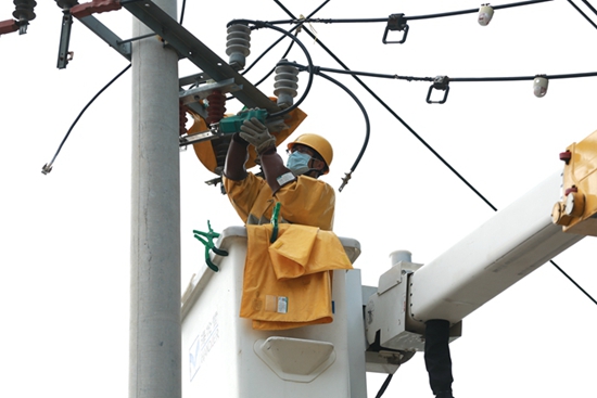 中國電力網(wǎng)訊 7月6日,在濰坊壽光市紀(jì)臺鎮(zhèn)某企業(yè)附近,國網(wǎng)壽光市供電公司帶電作業(yè)人員對10千伏紀(jì)五線42號桿隔離刀閘燒毀缺陷進行帶電處理,及時消除線路運行隱患,保證轄區(qū)企業(yè)迎峰度夏期間電力可靠供應(yīng)。
