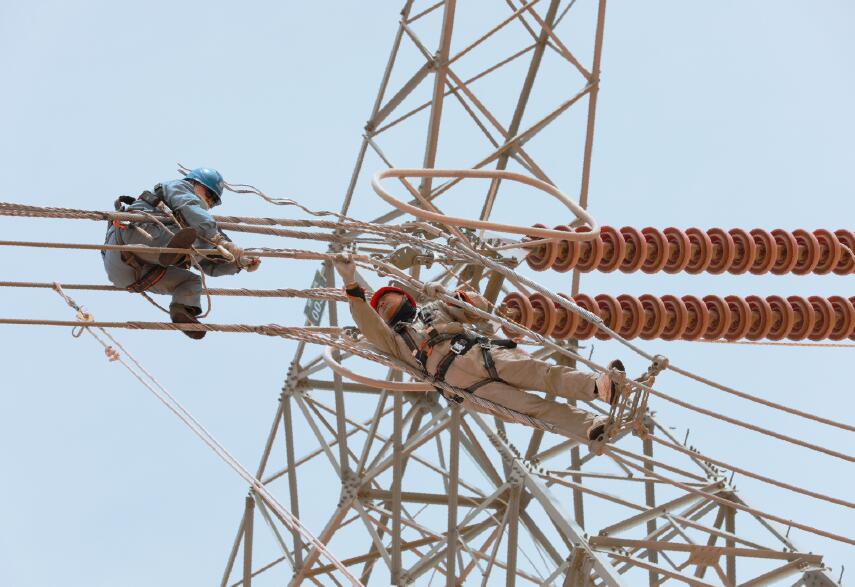 中國電力網(wǎng)訊  “本次工作任務為500千伏磴里線檢修消缺工作,大家要做好防護,系牢安全帶,工作任務和危險點誰還不清楚的,請現(xiàn)在提出來。”4月11日,烏海超高壓供電公司輸電管理處在500千伏磴里線開展春查外查停電檢修消缺工作。班前會結束后,各專業(yè)人員開始密切配合操作,爬塔走線、桿塔塔預試、X光探傷監(jiān)測、安裝備份線夾以及線路消缺……工作現(xiàn)場繁忙而有序。