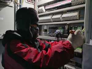 為防止現(xiàn)場(chǎng)設(shè)備受極端天氣狀況影響,現(xiàn)場(chǎng)青年職工積極主動(dòng)投身到設(shè)備防寒防凍工作中,加強(qiáng)設(shè)備巡視,重點(diǎn)對(duì)各端子箱、繼保室、設(shè)備間密封情況進(jìn)行密封性檢查,確保以上設(shè)備密封可靠,并對(duì)集電線路覆冰情況定時(shí)進(jìn)行紅外巡視,確保線路運(yùn)行正常,及時(shí)發(fā)現(xiàn)故障及時(shí)處理,為做好現(xiàn)場(chǎng)職工御寒保暖工作,除冬季必備工作服和安全帽,該事業(yè)部為現(xiàn)場(chǎng)職工配備了防寒面罩、自熱鞋墊、自熱貼等防寒物品,保證現(xiàn)場(chǎng)職工溫暖度冬。