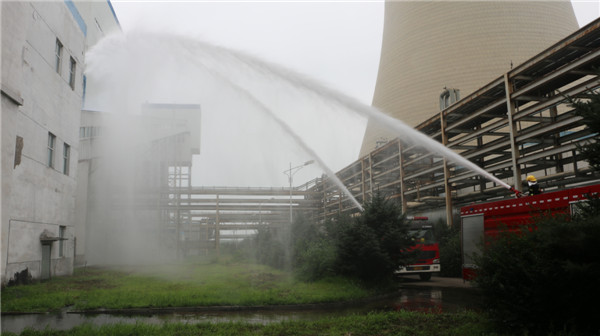 9時,各參演單位集結(jié)完畢,副廠長宣布“大唐長山熱電廠輸煤系統(tǒng)火災(zāi)演練”開始。本次演練假想為燃運(yùn)分場運(yùn)行人員巡視檢查中發(fā)現(xiàn)1號機(jī)組輸煤4段尾部皮帶積粉燃燒,輸煤皮帶冒煙著火,運(yùn)行人員發(fā)現(xiàn)火情后立即匯報(bào)集控班長并就地使用滅火器進(jìn)行撲救,集控班長接到報(bào)告后立即撥打火警電話告知火災(zāi)地點(diǎn),同時報(bào)告值長和燃運(yùn)分場主任,并組織集控值班員趕往火災(zāi)地點(diǎn)進(jìn)行撲救。值長立即向演練總指揮報(bào)告,并按要求做好機(jī)組調(diào)整工作。總指揮下達(dá)啟動輸煤皮帶火災(zāi)應(yīng)急預(yù)案,成立現(xiàn)場指揮部,全力撲救火情,保障人身安全和機(jī)組穩(wěn)定運(yùn)行。值長迅速通過生產(chǎn)溝通群向各應(yīng)急組發(fā)布應(yīng)急預(yù)案啟動命令,告知火情信息。廠消防隊(duì)和長山化廠消防車到達(dá)火災(zāi)現(xiàn)場,消防戰(zhàn)士開始撲救火災(zāi),9時11分火情得到控制,廠消防隊(duì)隊(duì)長報(bào)告輸煤皮帶明火已經(jīng)撲滅,消防人員正在清理現(xiàn)場,防止死灰復(fù)燃,至此演練結(jié)束。李云龍宣布應(yīng)急響應(yīng)結(jié)束,關(guān)閉應(yīng)急預(yù)案。