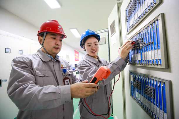 圖為熱控人員進(jìn)行汽輪機(jī)軸系振動(dòng)儀表間隙電壓測(cè)量