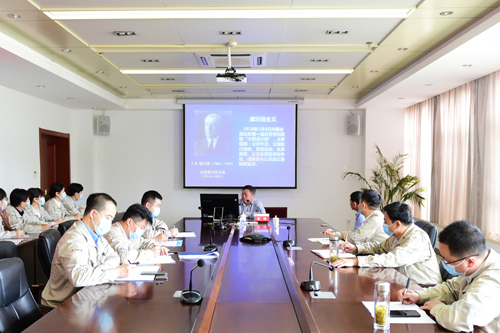 此次宣講嚴(yán)格落實常態(tài)化疫情防控措施,通過線上連線設(shè)置多個分會場,廠領(lǐng)導(dǎo)、各單位黨政負(fù)責(zé)人、黨員代表等參加專題輔導(dǎo)?;幢笔形h校校委委員、黨史副教授廖鋒講授《探索奮斗發(fā)展——百年黨史的回顧與啟迪》專題黨課,詳細(xì)解讀習(xí)近平總書記關(guān)于黨的歷史的重要論述,深入闡述中國共產(chǎn)黨百年奮斗的光輝歷程和歷史經(jīng)驗,全面回顧我黨百年來的探索、奮斗和發(fā)展歷程。民間藝術(shù)家田興超現(xiàn)場表演張力十足、高亢婉轉(zhuǎn)的淮北大鼓《淮海戰(zhàn)役推車情》,熱情謳歌革命戰(zhàn)爭年代淮海大地上的人民群眾,用“小推車”將星星火種推向大江南北的紅色故事。