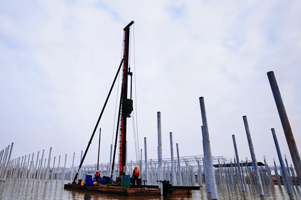 中國電力網(wǎng)訊 連日來,江西贛東北出現(xiàn)大范圍雨雪天氣,但在上饒市余干縣江埠鄉(xiāng)180兆瓦、大溪鄉(xiāng)150兆瓦漁光互補光伏發(fā)電建設(shè)工地上,卻是一片繁忙景象,工人們正加班加點、緊張有序的保障光伏電站實現(xiàn)早日全容量并網(wǎng)。