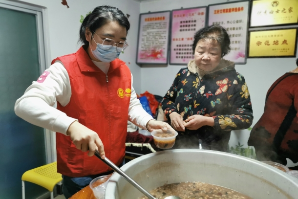 送粥活動伴著《福氣要來到》《親情頌》《幸??燔嚒返任乃囇莩龉?jié)日正式開始,該公司黨員志愿者們將一碗碗熱氣騰騰的拗九粥送到社區(qū)道德模范、身邊好人、文明家庭代表及現(xiàn)場老人手中,用實際行動傳承著中華孝道。同時志愿者還走進社區(qū)老人家中,為老人們送上拗九粥及節(jié)日的問候和祝福。志愿者們與老人閑聊、話家常,叮囑老人們要保重身體,讓老人們感受到了濃濃的關懷和溫暖。