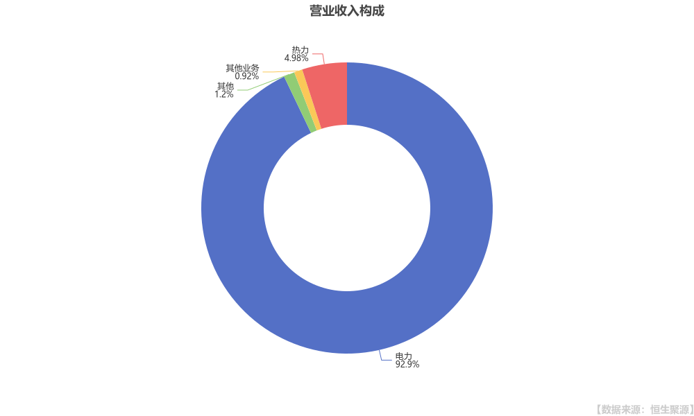 分產(chǎn)品來(lái)看,公司電力收入393.92億元,占比92.90%,同比增長(zhǎng)13.89%;熱力收入21.09億元,占比4.97%,同比下降3.04%;其他收入5.10億元,占比1.20%,同比下降72.54%;其他業(yè)務(wù)收入3.91億元,占比0.92%