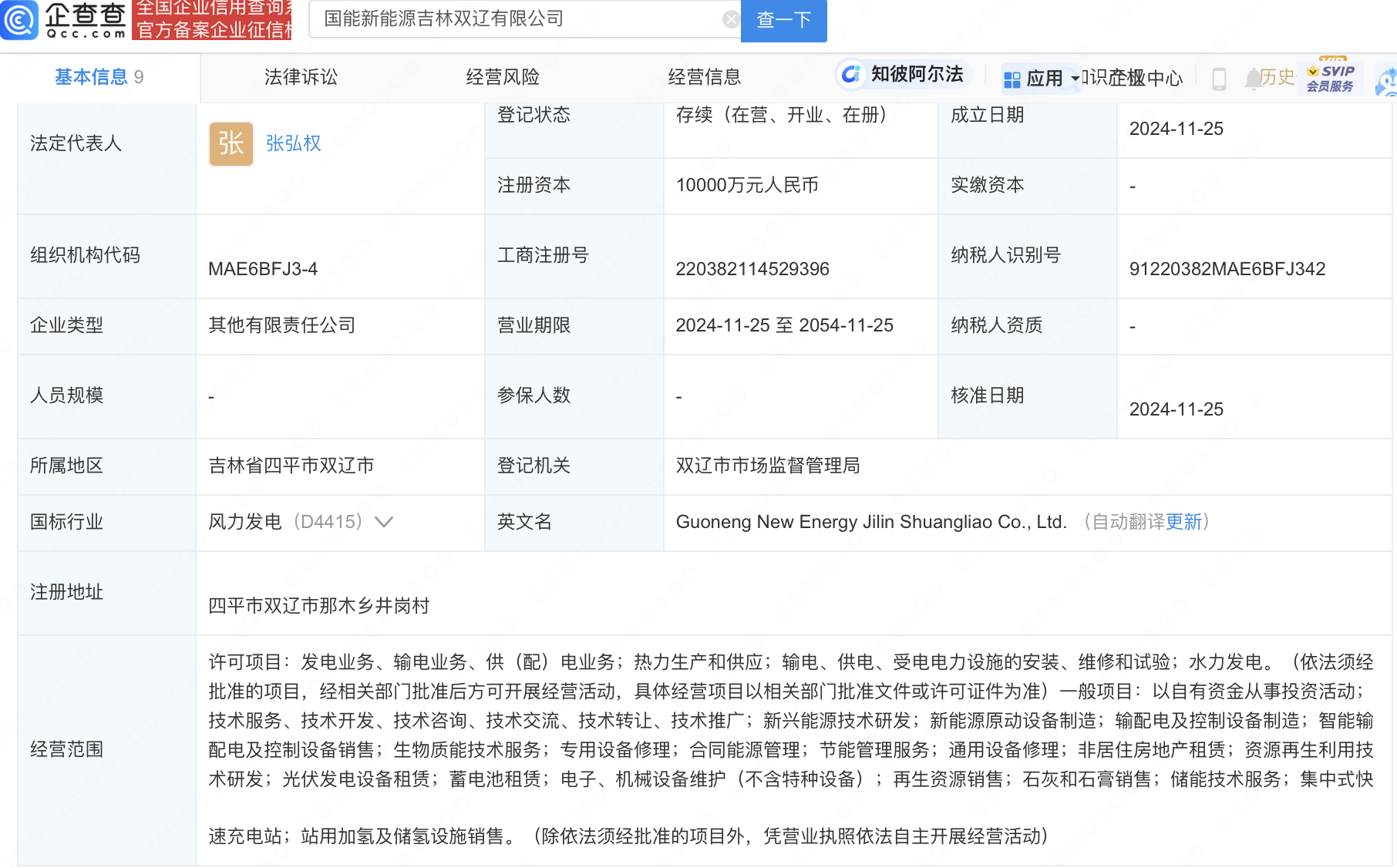 近日,國(guó)能新能源吉林雙遼有限公司成立,法定代表人為張弘權(quán),注冊(cè)資本1億人民幣,經(jīng)營(yíng)范圍含新興能源技術(shù)研發(fā)、新能源原動(dòng)設(shè)備制造、生物質(zhì)能技術(shù)服務(wù)等。企查查股權(quán)穿透顯示,該公司由國(guó)家能源投資集團(tuán)有限責(zé)任公司旗下國(guó)能吉林新能源發(fā)展有限公司、國(guó)能雙遼發(fā)電有限公司共同持股。