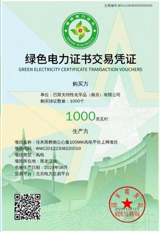 龍?jiān)措娏Ω咝七M(jìn)綠證應(yīng)領(lǐng)盡領(lǐng),全力支持集團(tuán)全產(chǎn)業(yè)100%綠電消費(fèi)工作,所屬碳資產(chǎn)公司在集團(tuán)電力營(yíng)銷(xiāo)公司的組織、指導(dǎo)下,積極配合推動(dòng)本次綠證核發(fā)交易,與主管機(jī)構(gòu)審核要求對(duì)標(biāo)看齊,按核發(fā)時(shí)間節(jié)點(diǎn)倒排工期,統(tǒng)籌交易方報(bào)價(jià)需求、合同簽署,最終促成樺南公心集100兆瓦風(fēng)電項(xiàng)目與德國(guó)巴斯夫特性化學(xué)品(南京)有限公司綠證劃轉(zhuǎn)交易,獲得全國(guó)首張綠色電力證書(shū)交易憑證。