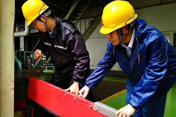 圖為運(yùn)行人員檢查凝結(jié)水冷卻水閘門運(yùn)行情況